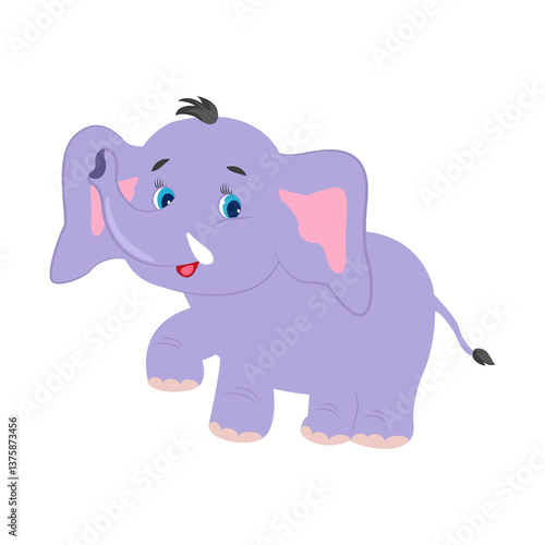 © Oleksandr, Naklejka premium Cheerful little friendly baby elephant on a white background. An element of your design. Animal mammal with big ears and trunk clipart for kids.