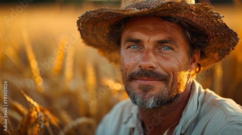 © Paul, Fototapeta premium Cheerful Middle-Aged Farmer in Perfect Focus Generative AI