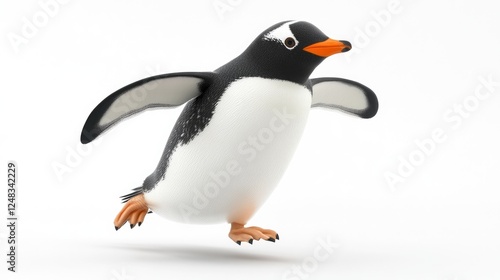 © Official, Fototapeta premium Cheerful Penguin in Motion against a White Background