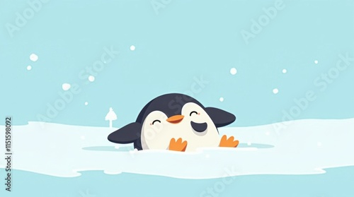 Fototapeta premium Cheerful Penguin Sliding on Ice
