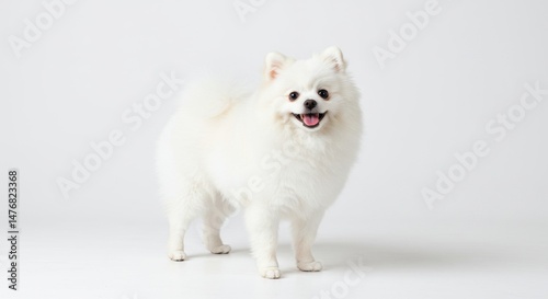 © Burak, Fototapeta premium Cheerful Pomeranian Dog on White Background