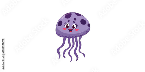 Fototapeta premium cheerful purple jellyfish cartoon character