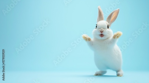 © vlntn, Obraz premium Cheerful rabbit in playful studio setting
