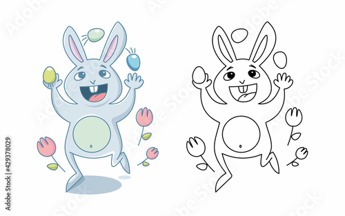 Obraz premium Cheerful rabbit juggles with Easter eggs. Easter holiday concept. Vector, illustration
