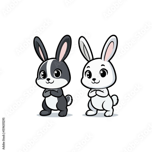 © alfan, Fototapeta premium Cheerful rabbit with long ears, standing on hind legs