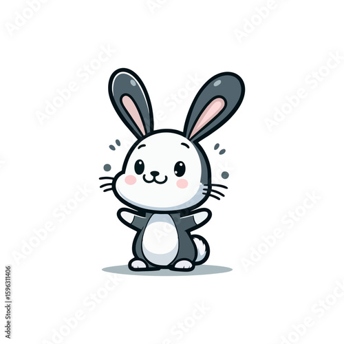 © alfan, Fototapeta premium Cheerful rabbit with long ears, standing on hind legs