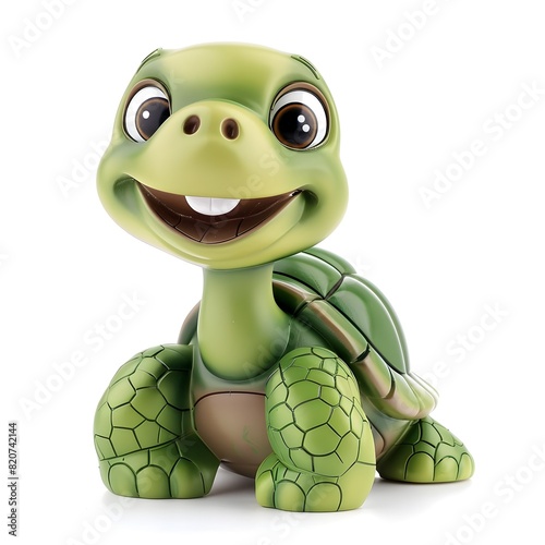 Fototapeta premium Cheerful Recycled Turtle Mascot with Friendly Smile on Clean White Background