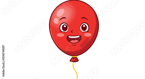 Obraz premium Cheerful red balloon with cartoon face and yellow string on white background