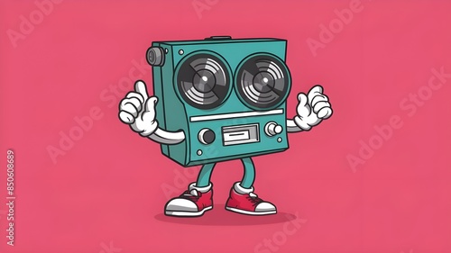 Fototapeta premium Cheerful Retro Boombox Character from the 60s - Adorable Music Player Design