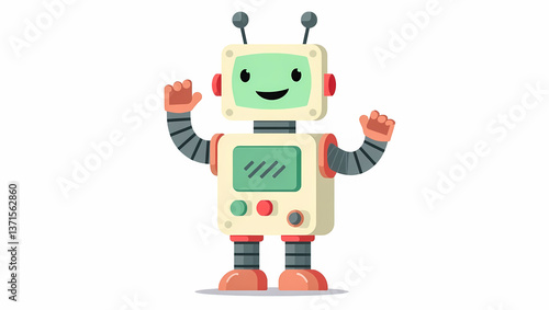 Fototapeta premium cheerful robot with a simplistic displaying a welcoming posture and friendly expression.