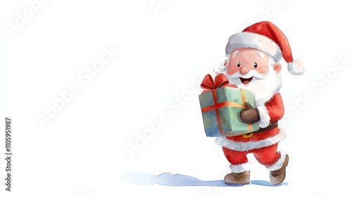 © NATTAKORN, Obraz premium Cheerful Santa Claus Carrying Giant Present with Joyful Expression