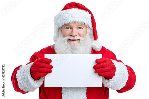 © udin, Naklejka premium Cheerful Santa Claus Holding a Blank White Sign for Message. Ai Generated Images