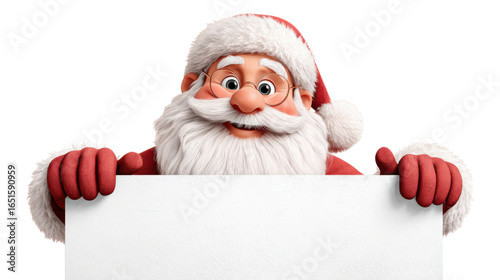 © Nok_prusspa, Naklejka premium Cheerful Santa Claus Holding Blank Sign for Holiday Messages