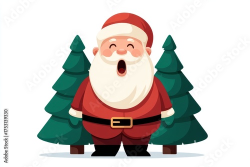Fototapeta premium Cheerful Santa Claus standing among evergreen trees, spreading holiday joy.
