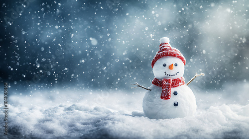 © Chonthicha, Obraz premium cheerful snowman in snow brings joy during winter festivities