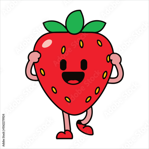 Fototapeta premium Cheerful strawberry character cartoon vector illustration, ideal for children...