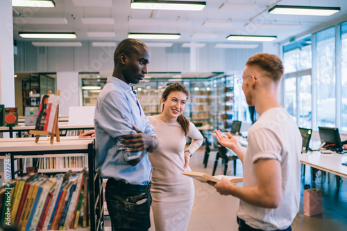© BullRun, Obraz premium Cheerful students preparing for exam together