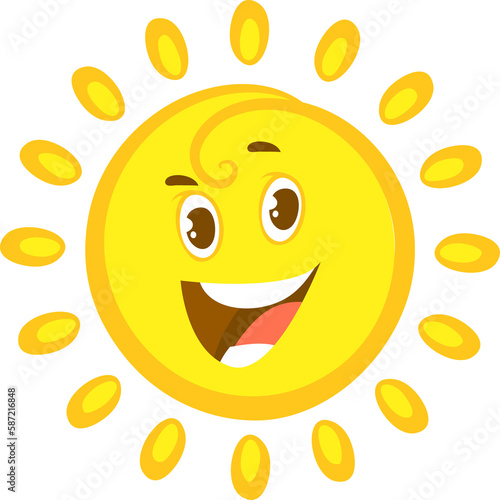 Fototapeta premium Cheerful sun character with happy face, light rays