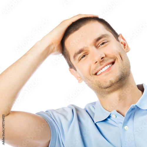 Obraz premium Cheerful thinking young man, over white