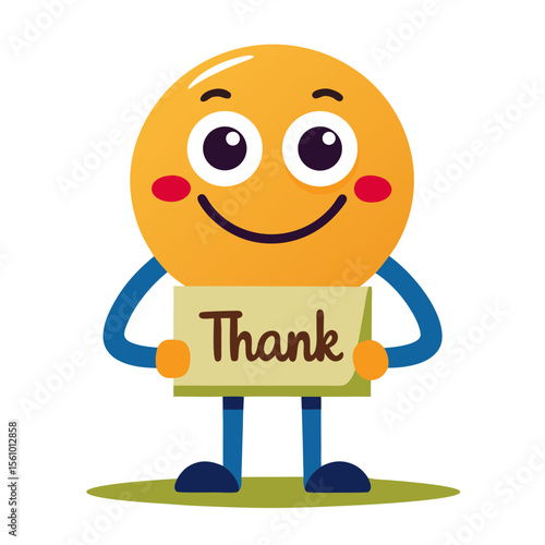 Obraz premium Cheerful yellow character holding thank you message blue green