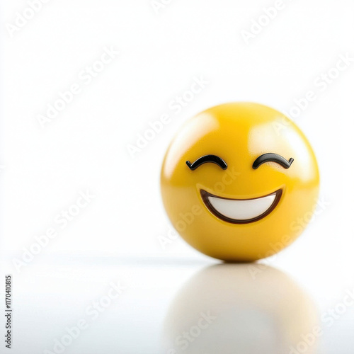 © Rachakrit, Fototapeta premium cheerful yellow emoji icon with big smile, symbolizing happiness and communication