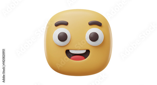 Fototapeta premium Cheerful yellow smiley face emoji icon in 3D isolated on white background, perfect for online reactions, friendly responses, messaging apps, and positive emotional communication