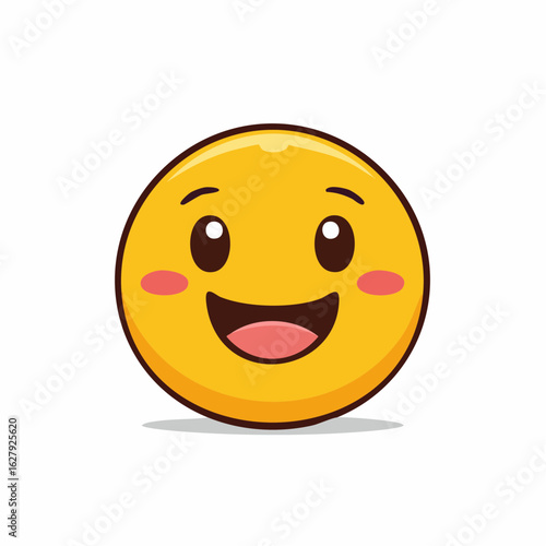 Fototapeta premium Cheerful yellow smiley face emoji with blush and open mouth expressing happiness