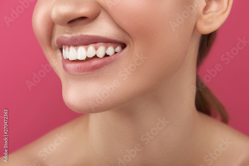 © Yakobchuk Olena, Obraz premium Cheerful young woman demonstrating her white healthy teeth