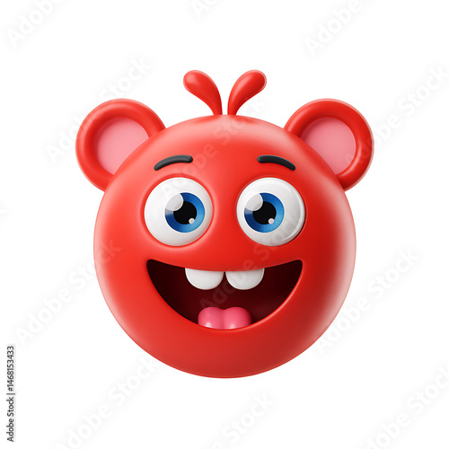 Fototapeta premium Cheery Cartoon Character: A vibrant, red cartoon character radiates pure joy, sporting a wide grin, cheerful eyes, and charming antennae, capturing the essence of happiness and fun.