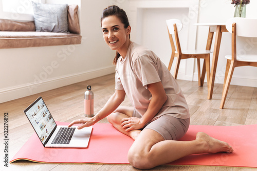 © Drobot Dean, Naklejka premium Cheery young beautiful brunette fitness woman
