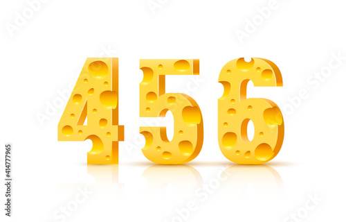 © hobbitfoot, Fototapeta premium Cheese font 3d symbol, numbers 4 5 6 set. Vector
