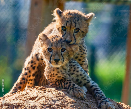 © Steam Cone Story, Fototapeta premium Cheetah Cubs Snuggling on a Dirt Mound