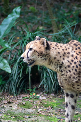© tang90246, Fototapeta premium Cheetah is moving on the grass in the zoo in Singapore.