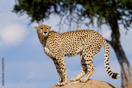 © Abdelrahman, Obraz premium cheetah over termite house observing the plain
