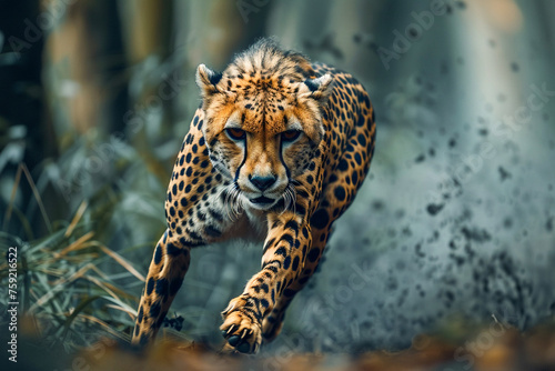 © Tanasorn, Obraz premium Cheetah overtaking prey, utilizing rear curtain sync for dynamic motion effect
