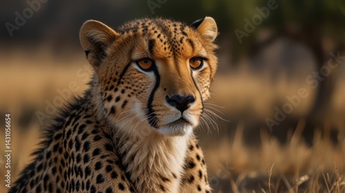 Obraz premium Cheetah portrait, African savanna sunset, wildlife photography, nature...