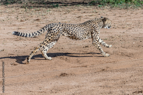 © hal_pand_108, Obraz premium cheetah runnning in bait pursuit at Conservation facility, near Otjiwarongo, Namibia