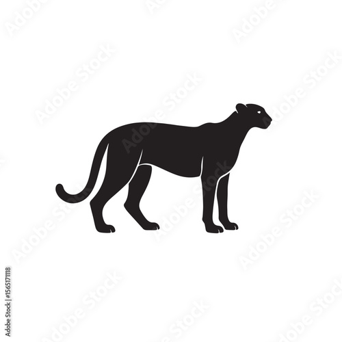 © Shahadat, Obraz premium Cheetah Silhouette Vector Illustration of Wild Animal on White Background