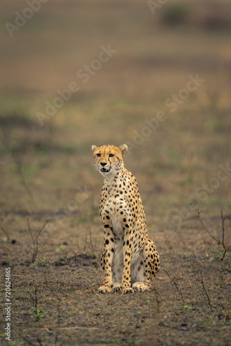 © Nick Dale, Obraz premium Cheetah sits staring on grassland in sunshine