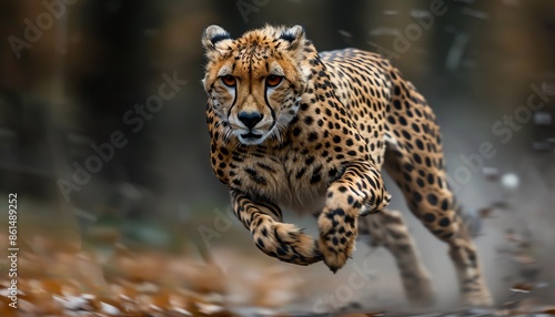 Fototapeta premium Cheetah sprinting at full speed, motion blur, dynamic shot