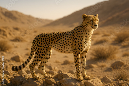 © Williams, Obraz premium Cheetah standing on rocky terrain in desert landscape during daylight