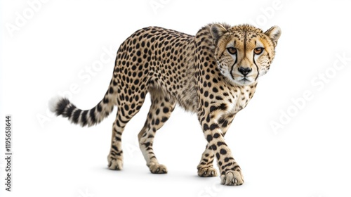 Fototapeta premium Cheetah Walking Gracefully on White Background with Intense Gaze