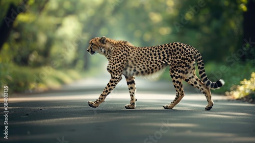 © FACTORY GRAPHICA , Obraz premium Cheetah Walking on a Road
