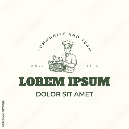 © lineandcircle, Fototapeta premium Chef bring basket full of vegetables logo design