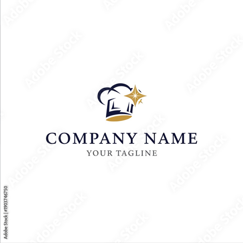 © iis, Obraz premium Chef Hat with Star and Clouds Logo Design.