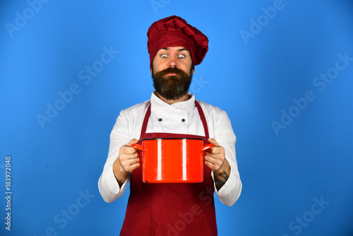 © be free, Obraz premium Chef holding a pot and looking at it with surprise