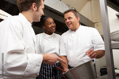 © Monkey Business, Obraz premium Chef Instructing Trainees In Restaurant Kitchen