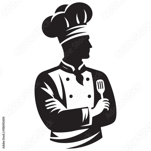 Fototapeta premium Chef Silhouette Vector Illustration, Solid White Background.