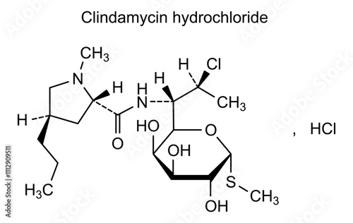 Obraz premium Chemical structure of clindamycin hydrochloride, drug substance