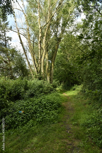 © Photocolorsteph, Obraz premium Chemin dans la végétation dense d'un bois à Ghislenghien (Ath)